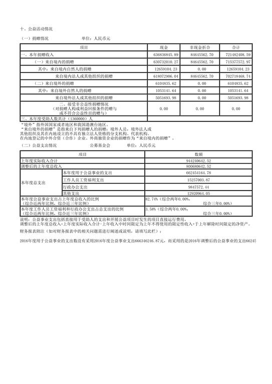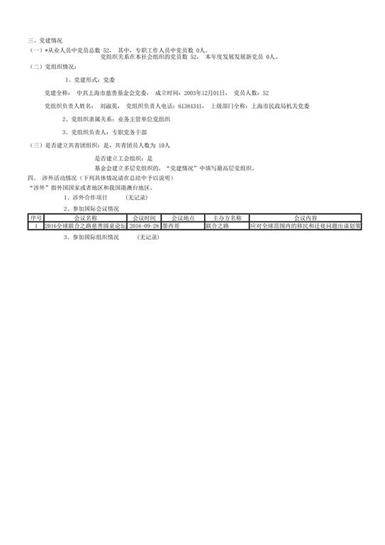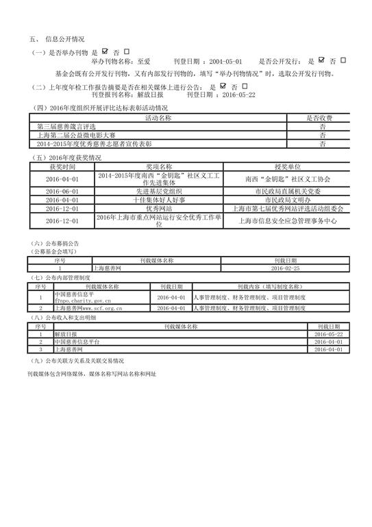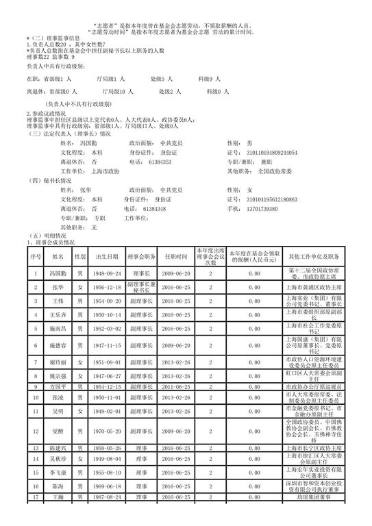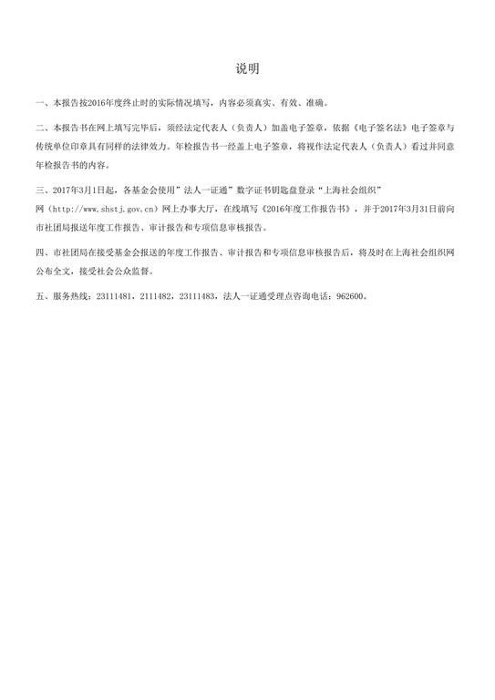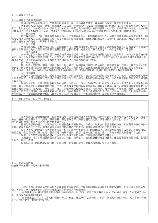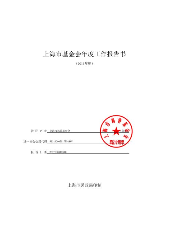 上海市慈善基金会年度工作报告书(2016年度)