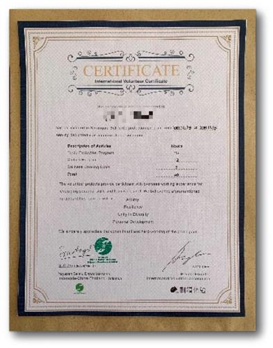 国内某义工旅行机构的证书