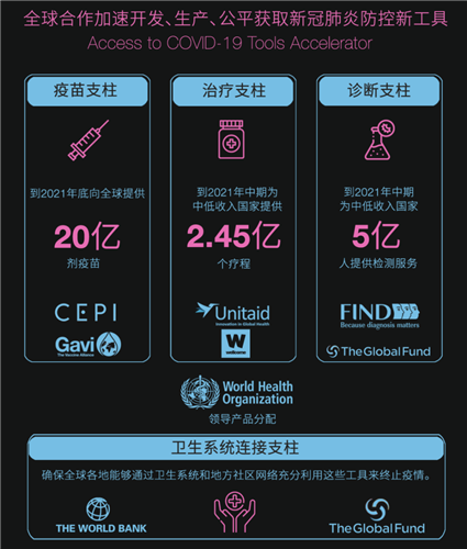 在眼下,面对新冠疫情,WHO连同Gavi、流行病防范创新联盟(CEPI)等组织于去年4月共同成立了新冠肺炎疫苗实施计划(COVAX),该计划是“获取抗击新冠肺炎工具加速计划(ACT-A)”中的疫苗工作支柱,旨在加快新冠肺炎疫苗的研发和生产,并确保疫苗的公平可及。