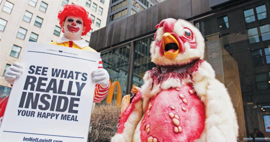 开放慈善的受赠方之一,人道联盟在芝加哥市中心的麦当劳外举行抗议活动,针对麦当劳鸡肉菜单广告,打出了“我不爱它”的运动口号。