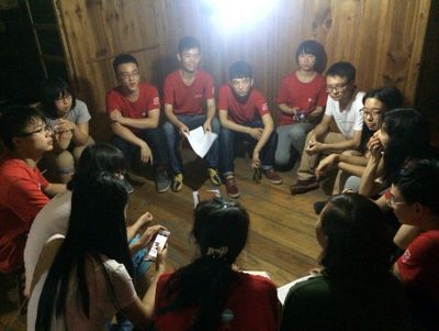 夜幕下围坐一圈开队务会
