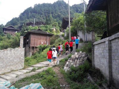 爬坡去寻找村里人家