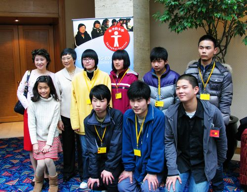 资助人与受助学生合影(黄色胸卡为受助学生)