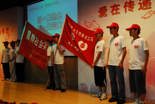 2010年6月25日 下午3:00,在同济大学大学生活动中心演讲厅举行了“因为有您,爱在传递”——唯爱天使基金同济2010年毕业生奖励资助仪式暨“唯爱天使义工队”暑期社会实践出征仪式。