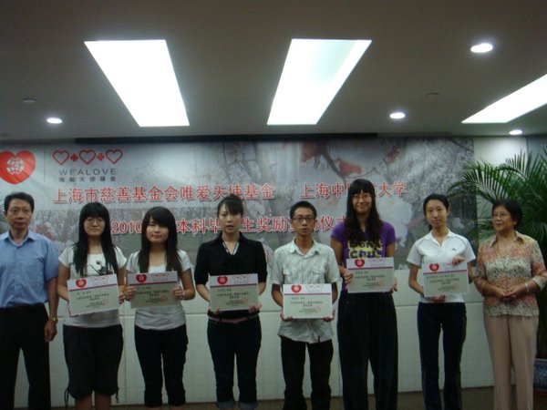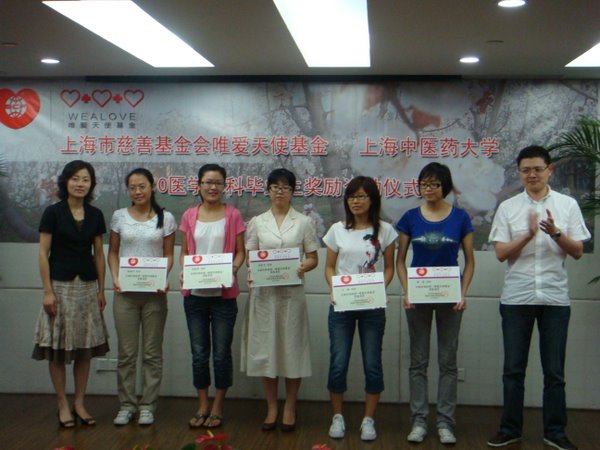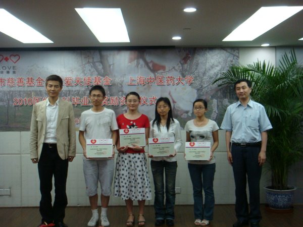 2010年6月29日 下午1:30,上海市慈善基金会唯爱天使基金·上海中医药大学2010届医学本科毕业生奖励资助仪式在行政三楼大会隆重举行。